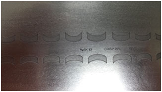 High Rockwell 52 durometer thin steel plate material, rated at 250,000 cycles. This material is ideal for your solid or screened artwork applications. The material holds flatness and never shows any ink puddles or banding. Material thickness is .5mm and etch depth can be controlled to your specifications.